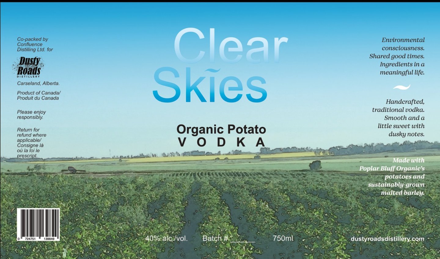 In 2023, Dusty Roads released Clear Skies Organic Potato Vodka, an Alberta first.