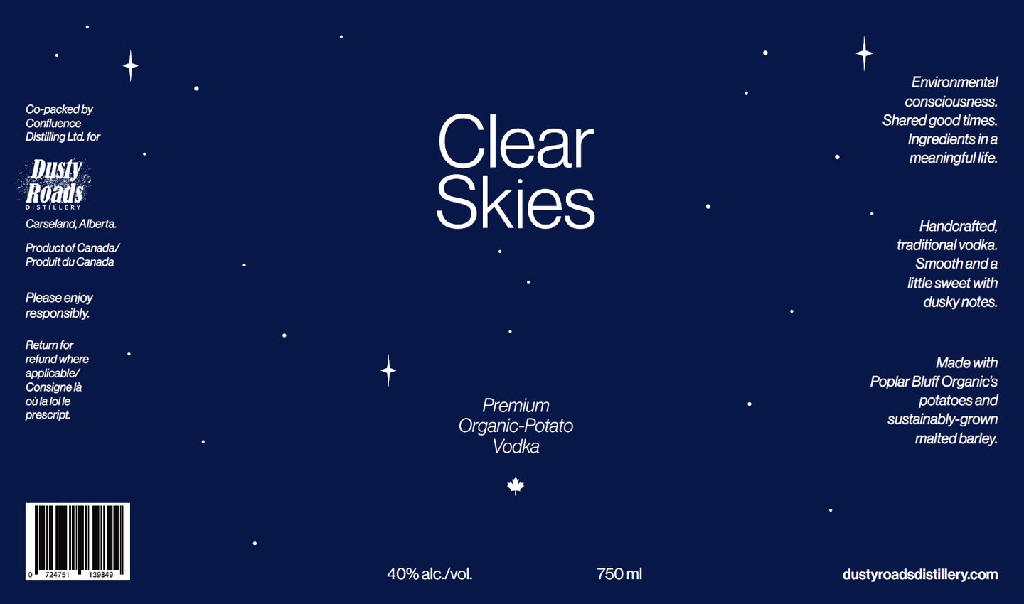 In 2023, Dusty Roads released Clear Skies Organic Potato Vodka, an Alberta first.